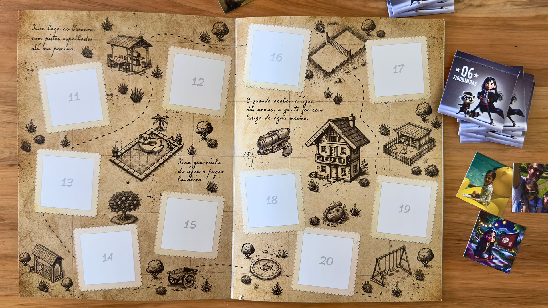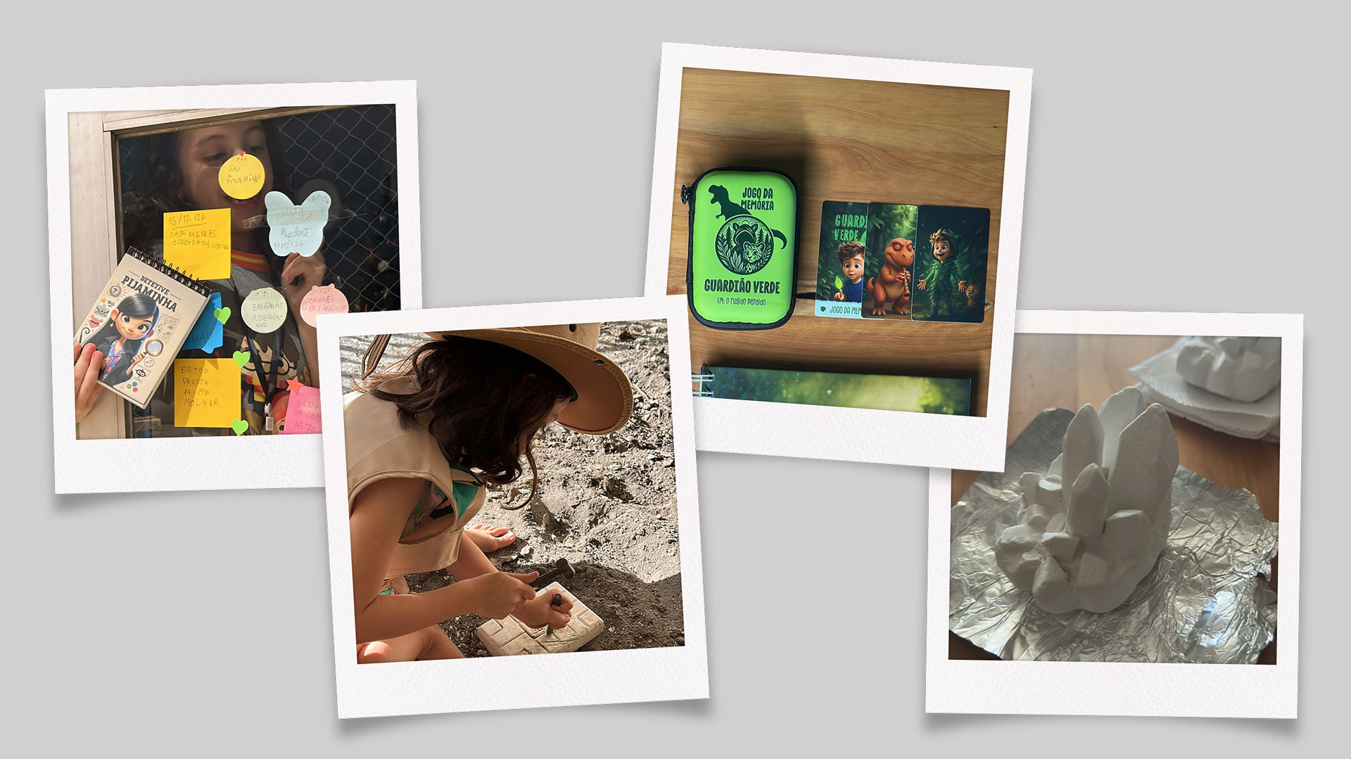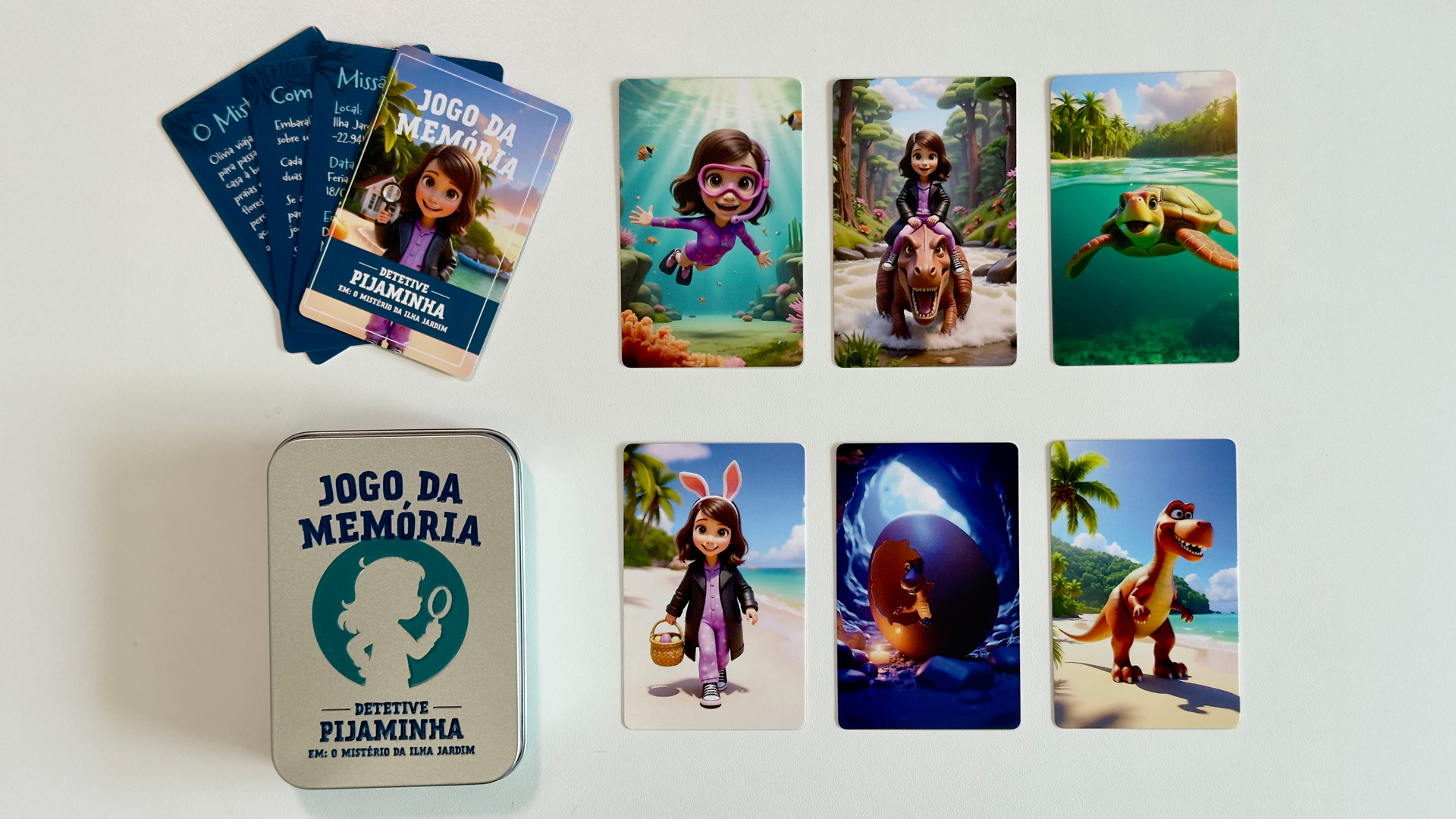 - Uma caça ao tesouro levando até o primeiro livrinho e terminando com seu kit de detetive