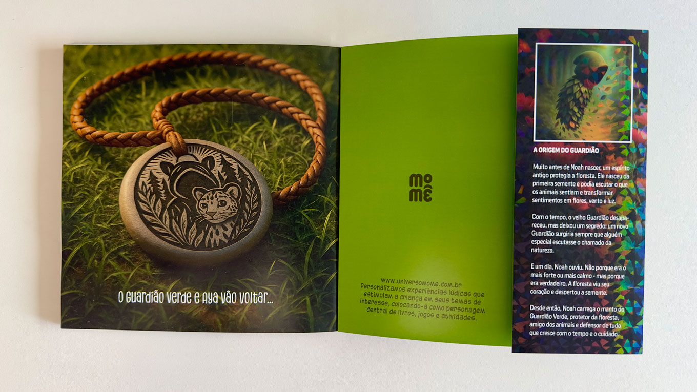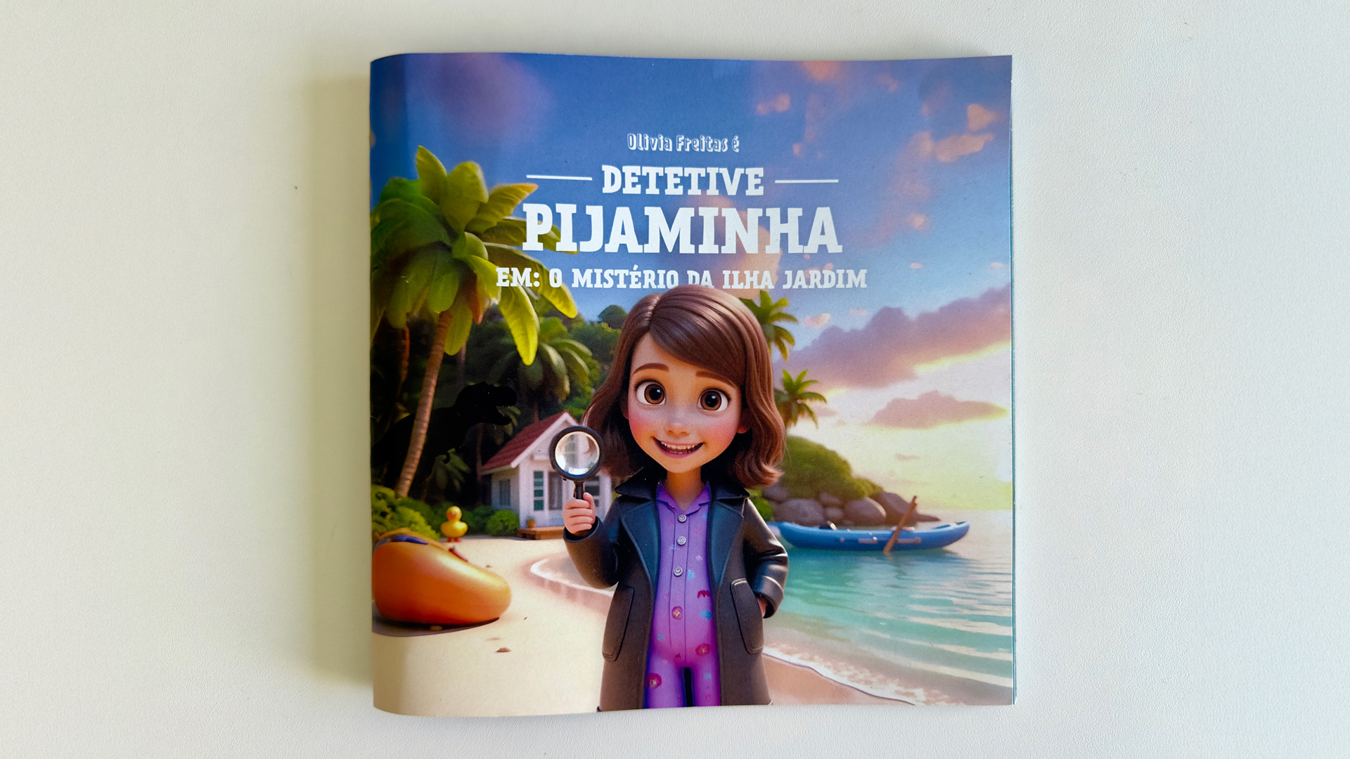 Voltando pra casa, fiz os primeiros testes transformando Olivia em uma personagem no estilo Pixar usando IA e fiquei de queixo caído. Durante a semana seguinte, Olivia recebeu uma série de itens, pistas e enigmas, incluindo livrinhos que contavam a história da Detetive Pijaminha até aquele momento e apontavam os próximos passos. Tudo isso foi criado usando ChatGPT (na versão 3.5 na época, se não me engano), algum conhecimento de design gráfico e criatividade.