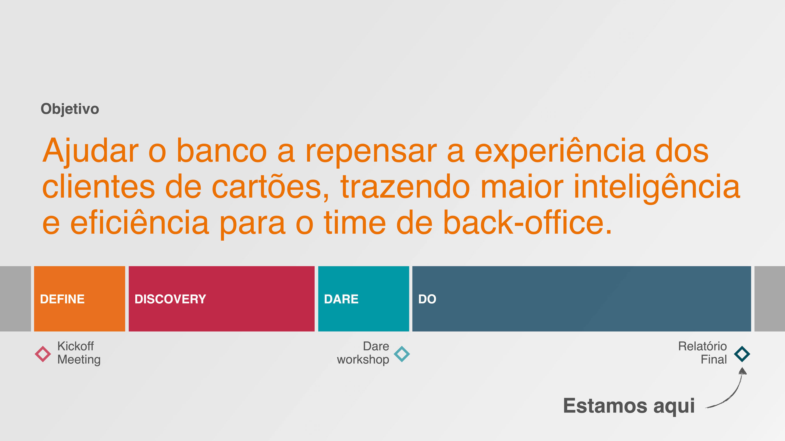 Repensar a experiência dos clientes de cartões à luz de uma nova plataforma tecnológica, permitindo o entendimento da experiência como um todo.